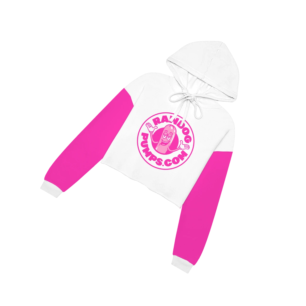 Rocking crisp white with flirty pink sleeves, this sexy cut-off gets girls wet the second they slip it on. It's fun, fierce, and all profits from sales get locked into the $RawDog token.